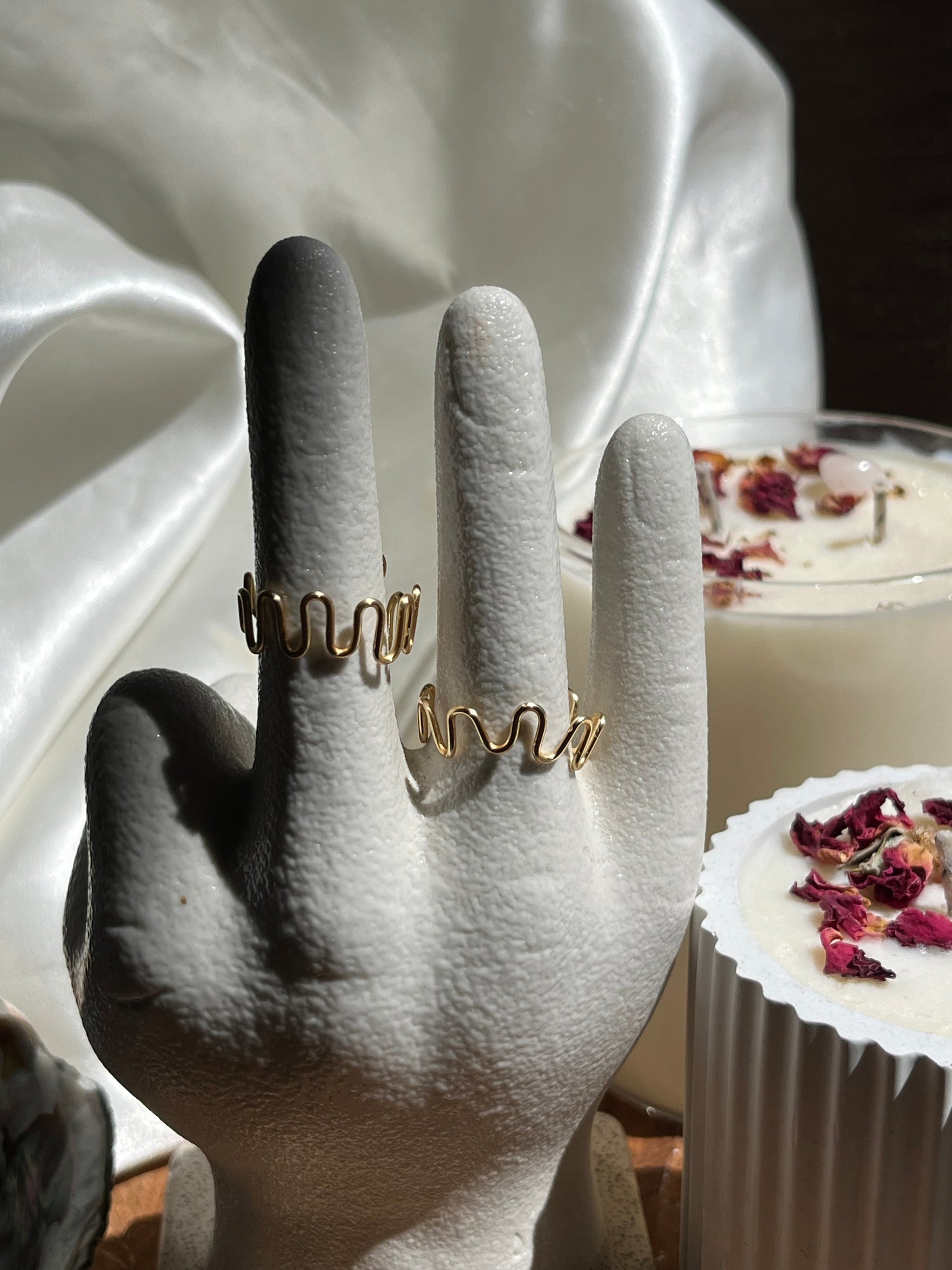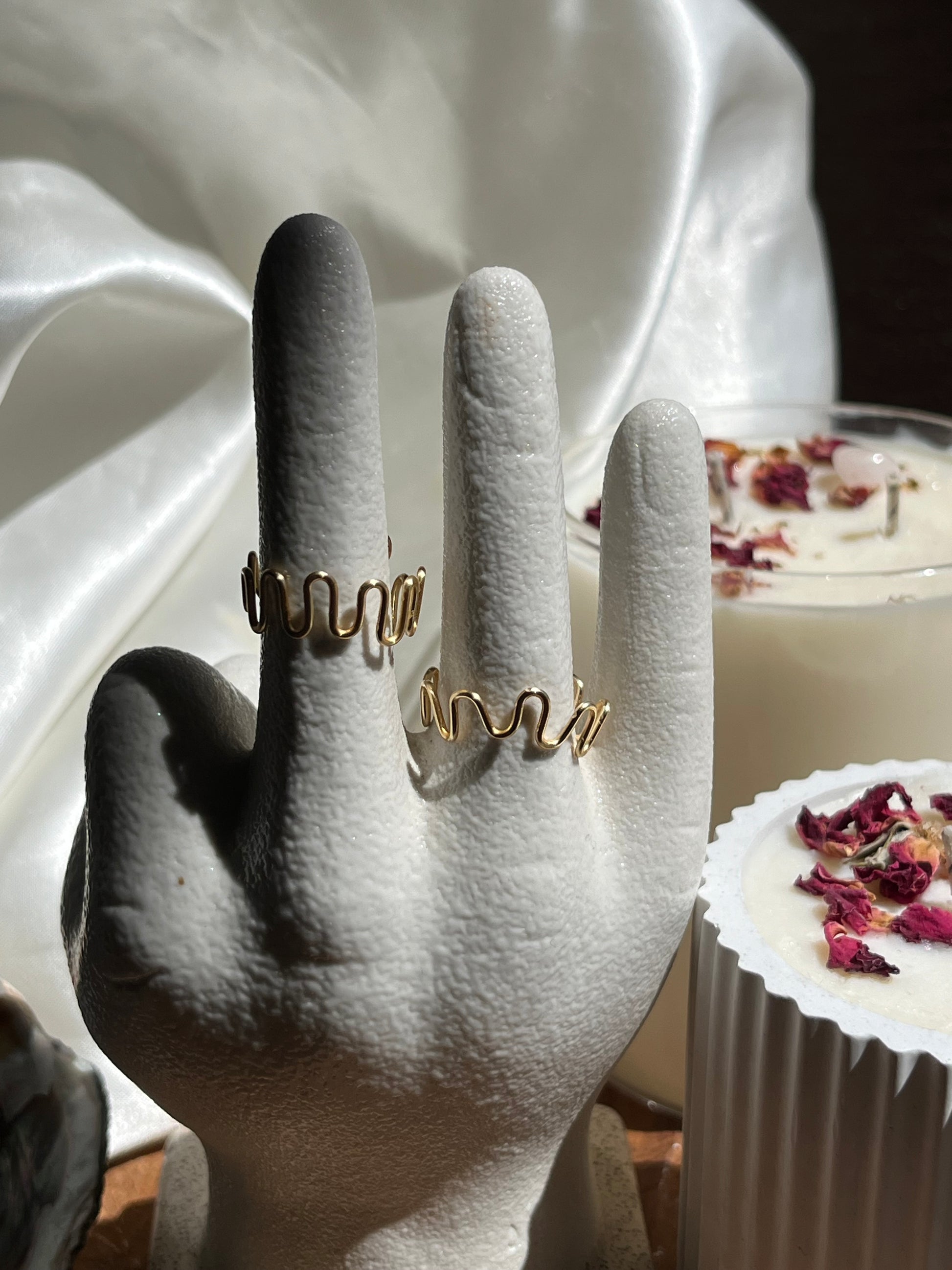 Anillo con ondas, ajustable.