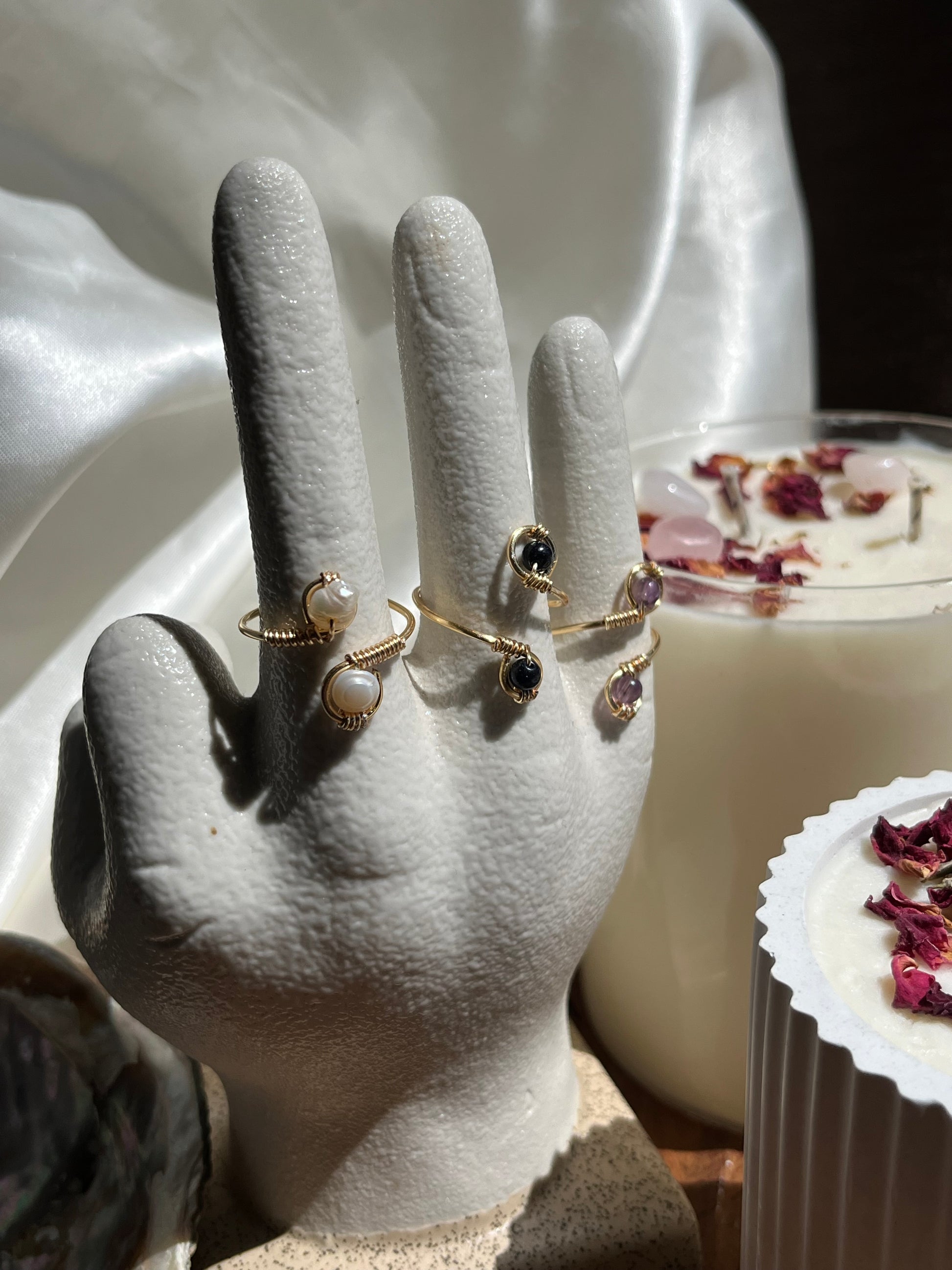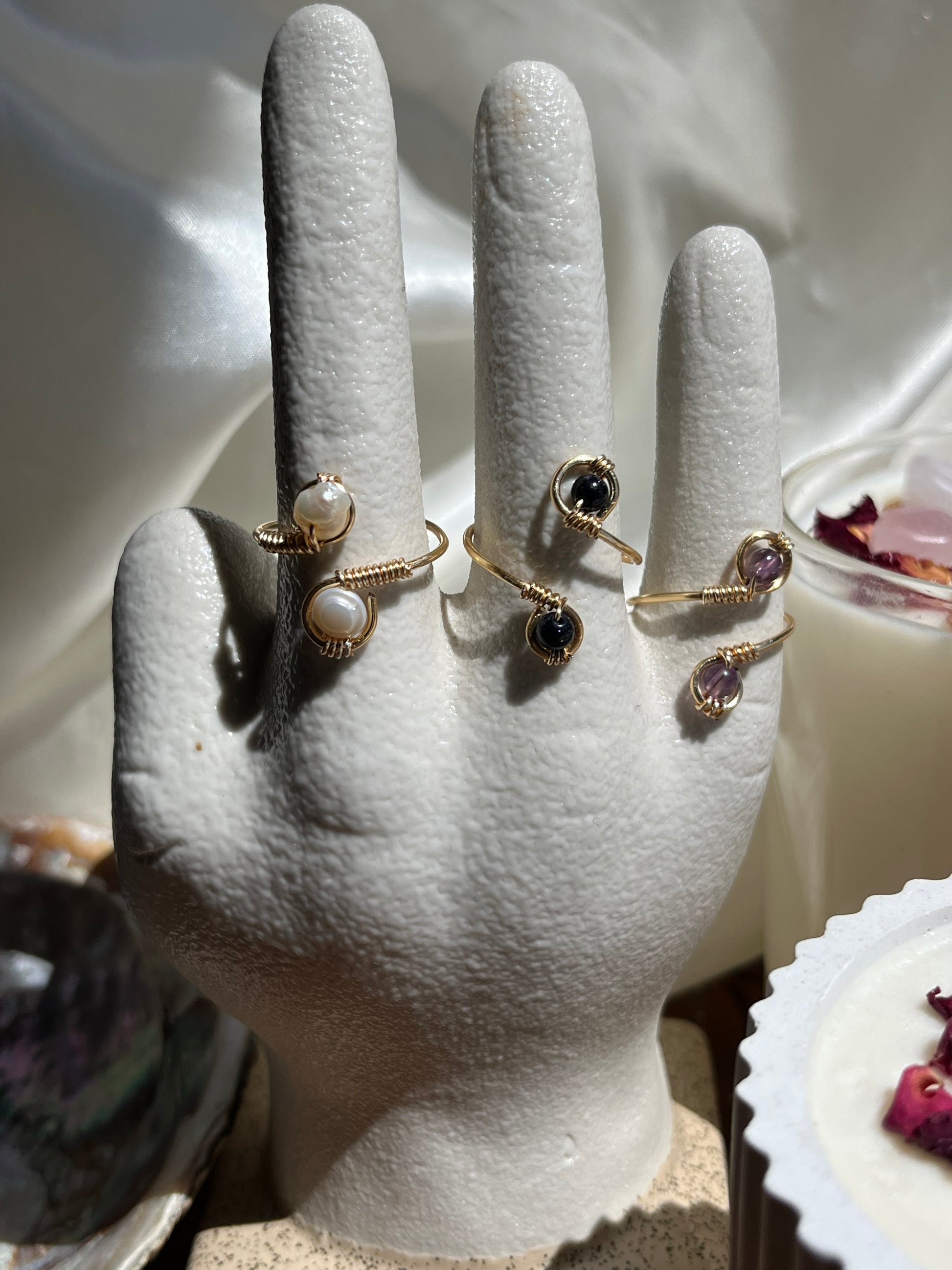 Anillo Piedra Bola 4mm Doble, ajustable. Todas las piedras, formas son diferentes.