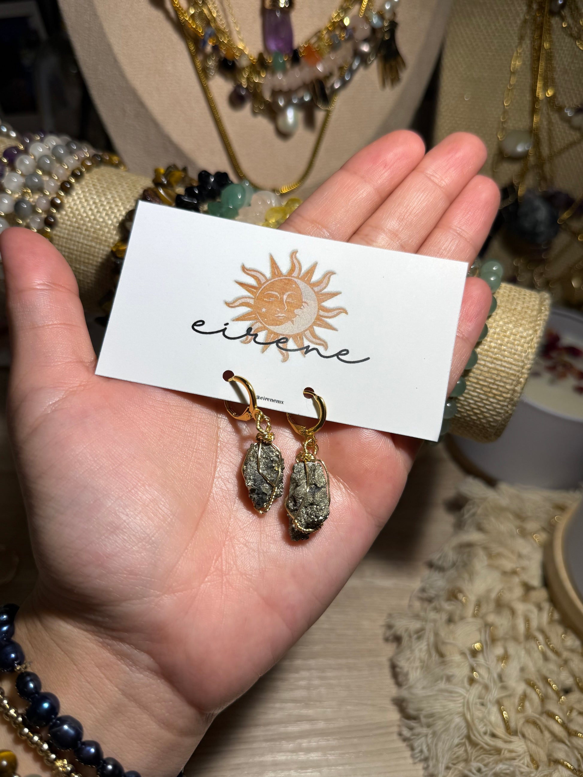 Huggies pirita en bruto, en oro laminado, varía tamaño y forma.